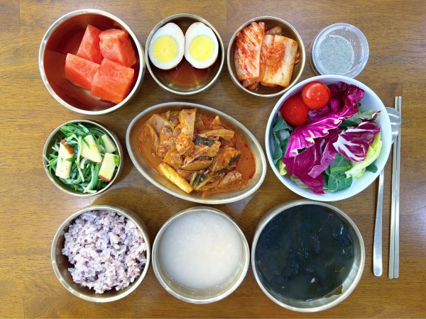 잡곡밥/ 누룽지/ 미역국/ 묵은지돼지고기찜/