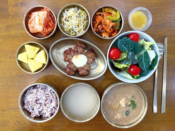 잡곡밥/ 누룽지/ 청국장찌개/ 플라워떡갈비/