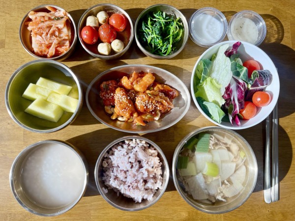 잡곡밥/ 누룽지/ 소고기무국/ 아귀강정/