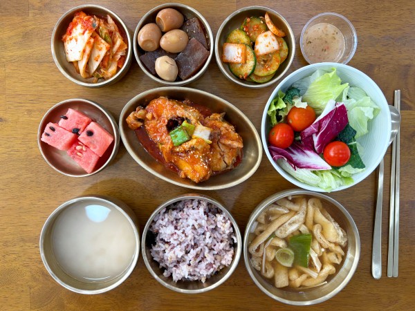 동글오이무침/ 김치/ 계절샐러드/ 수박