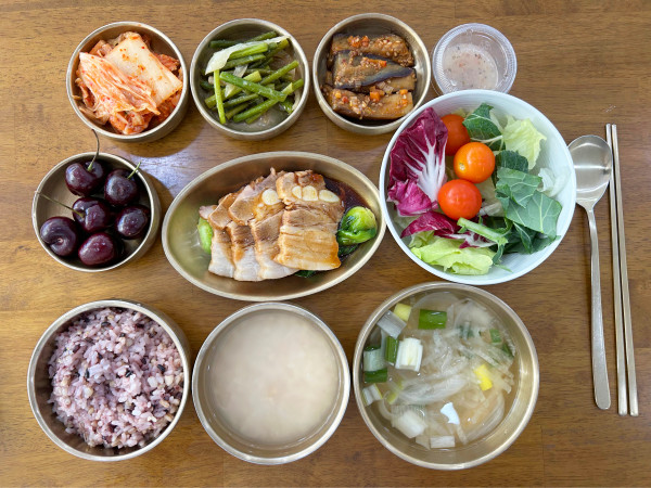 잡곡밥/ 누룽지/ 맑은무채국/ 동파육/