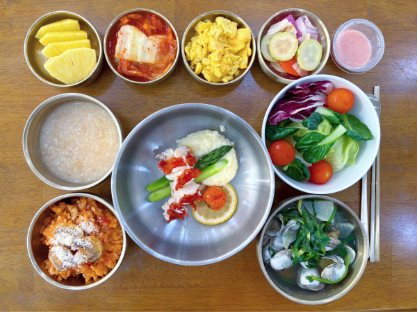 스크램블에그/ 수제피클/ 김치/ 누룽지/