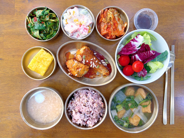 꽃맛살샐러드/ 참나물생채/ 김치/