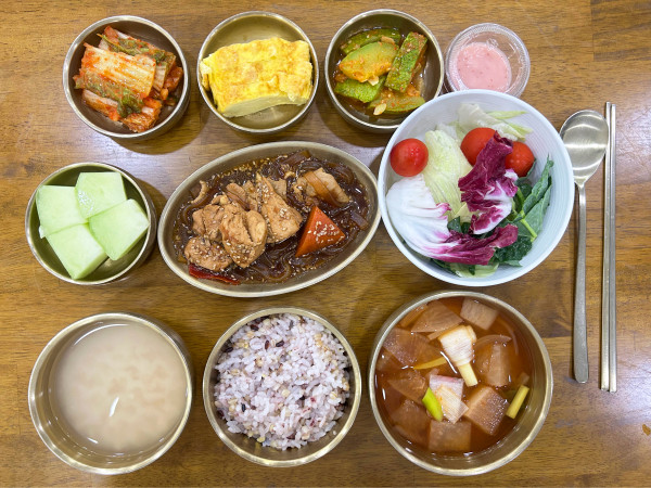 잡곡밥/ 누룽지/ 오징어무국/ 안동찜닭&납작당면/
