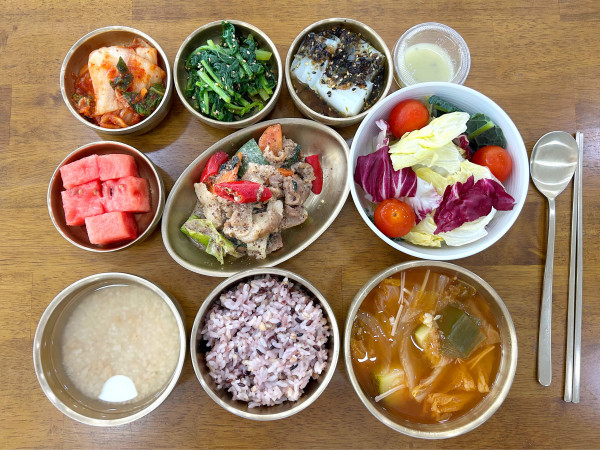 잡곡밥/ 누룽지/ 김치찌개/ 들깨백불고기/