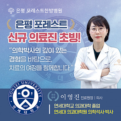 은평 포레스트 신규 의료진 초빙! 은평 포레스트한방병원 통합암센터에 이영진 진료원장이 새롭게 함께합니다. 의학박사로서의 임상 경험을 바탕으로 질환만을 … 2026.01.20