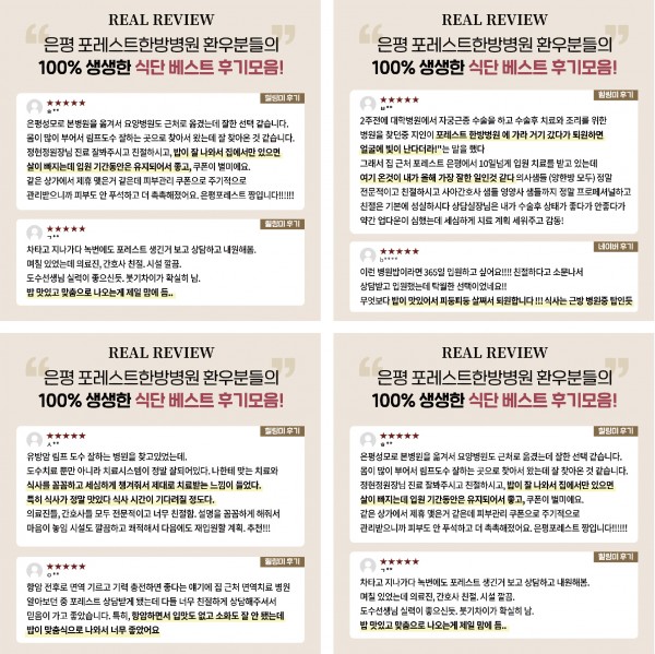 은평 포레스트한방병원 환우분들의 100%생생한 식단 리얼 후기를 소개합니다!