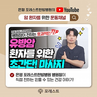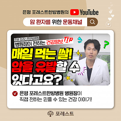 자궁내막암 3기, 박지혜 환우님의 희망일지 ep_1 | 포레스트 환우 이야기 2024.08.08 자궁내막암 3기, 박지혜 환우님의 희망일지 ep_2 | 포레스트 환우 이야기 2024.08.08 자궁내막암 3기, 박지혜 환우님의 희망일지 ep_3 | 포레스트 환우 이야기 2024.08.08 폐암 4기(비소세포암), 서중원 환우님의 희망일지 ep_1 | 포레스트 환우 이야기 2024.08.08 폐암 4기(비소세포암), 서중원 환우님의 희망일지 ep_2 | 포레스트 환우 이야기 2024.08.08 폐암 4기(비소세포암), 서중원 환우님의 희망일지 ep_3 | 포레스트 환우 이야기 2024.08.08 Hot 이 보라색이 면역력을 살립니다?! 가지에 숨겨진 힘 보라색 채소의 대표 주자, 가지! 그냥 먹으면 손해?! 암 예방에 도움을 줄 수 있는 '파이토케미컬'의 비밀과 가… 2025.07.24 Hot 초복을 담은 포레스트의 여름 밥상 안녕하세요, 포레스트입니다♥ 초복, 여름의 시작을 맞아 정성 가득한 보양식을 준비했습니다. 지친 몸에 활력을, 떨어진… 2025.07.22 Hot [건강정보]매일 먹는 쌀, 암을 부를 수도 있습니다? “매일 먹는 쌀밥, 암을 부를 수도 있습니다?” 지구 온난화로 인해 쌀 속 비소(중금속) 농도가 점점 높아지고 있다는 사실,… 2025.07.10 Hot [의료진 초빙 소식] 포레스트와 함께할 새로운 얼굴 [의료진 초빙 소식] 포레스트와 함께할 새로운 얼굴을 소개합니다! 안녕하세요, 포레스트입니다. 환자 한 분 한 분에게 … 2025.07.03 Hot 힐링미에서 인정받은 포레스트 입원후기 암 요양병원 상담 앱 힐링미에서 인정받은 포레스트 입원후기를 소개합니다. 환자 한 분, 한 분의 상황에 맞춘 맞춤 치료… 2025.07.01 Hot 이달의 포레스트 얼굴을 소개합니다! 의료의 중심엔, 사람이 있습니다. 이달의 포레스트 얼굴을 소개합니다. 포레스트는 ‘사람 중심’의 의료를 실천합니다. … 2025.06.24 Hot 포레스트, 늘 곁에 있는 치료의 이름 안녕하세요 포레스트입니다. 지금까지 약 62,312명 이상의 소중한 환자분들이 포레스트의 진료를 경험하셨습니다. 전국 모… 2025.06.02 Hot 은평 포레스트 힐링 미술 클래스 [은평 포레스트 힐링 미술 클래스를 소개합니다] 말로 다 하지 못한 감정들, 붓을 들고 천천히 그려내보아요:) 포레스트 은… 2025.05.20 Hot 유방암 환우분들을 위한 마사지 운동법 소개 유방암 환우분들을 위한 마사지 운동법 소개 포레스트에서 준비한 오늘의 건강 콘텐츠! 수술 후 뭉친 근육과 뻣뻣한 움직임, … 2025.04.24 12345 Search 검색대상 제목 내용 제목+내용 회원아이디 회원아이디(코) 글쓴이 글쓴이(코) 검색어 필수