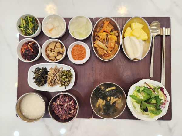 잡곡밥/누룽지/황태미역국/총알새송이조림/