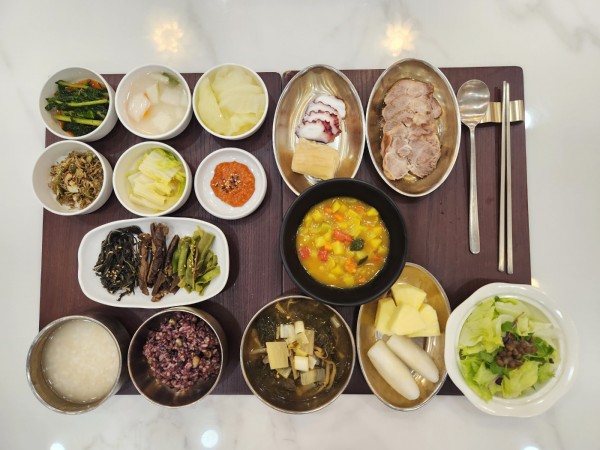 9월 16일 항암식단 [9/16 월요일 중식] 잡곡밥/누룽지/무시래기된장국/문어삼합/ 야채카레(라이브)/견과류잔멸치볶음/ 알배기나물/궁채*건가지*고춧잎나물/ 김치&물김치/계절샐러드/파인애플&배 목록