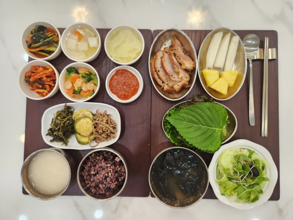 9월 22일 항암식단 [9/22 일요일 중식] 잡곡밥/누룽지/미역국/한방족발&모둠쌈채/ 브로콜리알새우볶음/무말랭이무침/ 호박고지나물*고비나물*참나물무침/ 김치&물김치/계절샐러드/파인애플&참외 목록