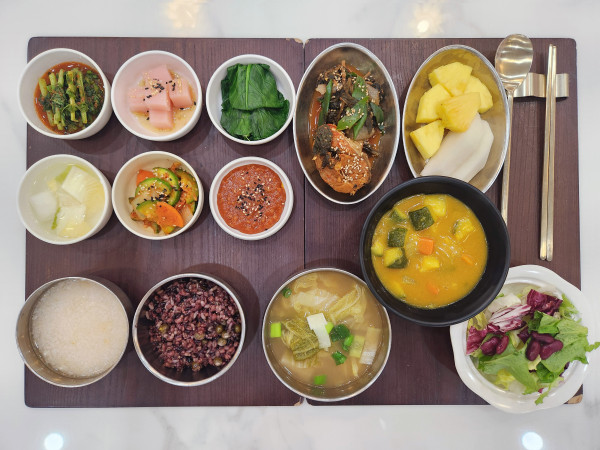 1월 20일 항암식단 [1/20 화요일 중식] 잡곡밥/누룽지/콩가루배추국/코다리시래기조림/ 백년초묵&양념장/매콤애호박볶음/카레라이스(라이브)/ 케일숙쌈/김치&물김치/계절샐러드/파인애플&배 목록