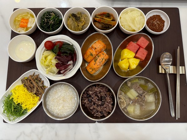 11월 11일 항암식단 [11/11 토요일 중식] 잡곡밥/ 누룽지/ 소고기무국/ 연어스테이크&레몬마요소스/ 묵은지된장지짐/ 시금치무침/ 김치&물김치/ 계절샐러드/ 수박&파인애플 목록