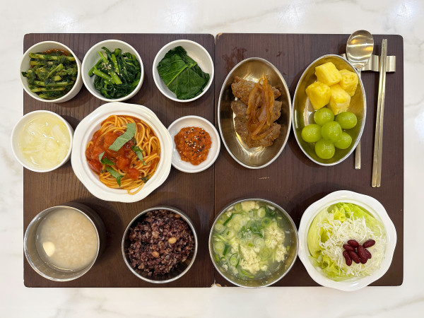 토마토파스타/쑥갓나물/케일숙쌈/김치&물김치/