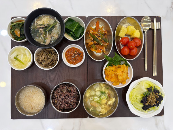 11월 28일 항암식단 [11/28 금요일 중식] 잡곡밥/누룽지/황태계란국/오징어볶음/ 유산슬/고구마순나물/늙은호박채전(라이브)/ 케일숙쌈/김치&물김치/계절샐러드/ 파인애플&대추방울토마토 목록