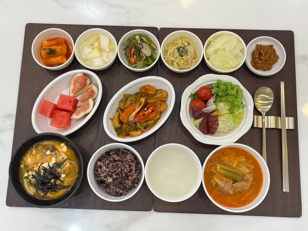 김치찌개/주꾸미볶음/사과영양부추무침/