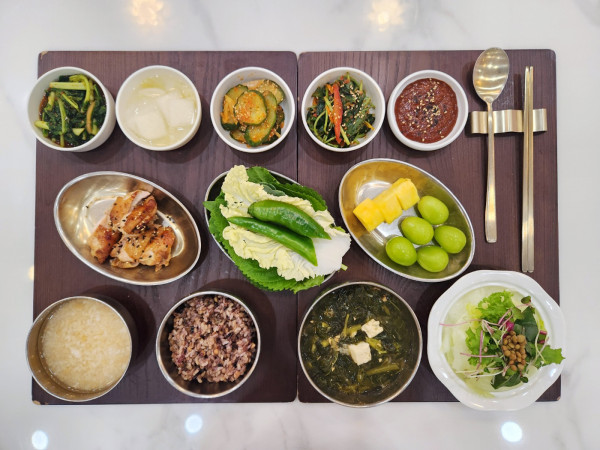 잡곡밥/누룽지/아욱된장국/닭보쌈&쌈채소,숙채/
