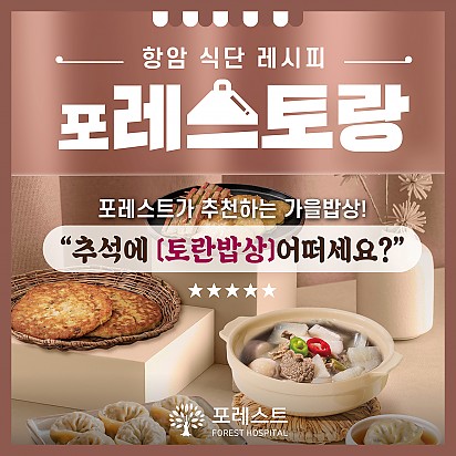 자궁내막암 3기, 박지혜 환우님의 희망일지 ep_1 | 포레스트 환우 이야기 2024.08.08 자궁내막암 3기, 박지혜 환우님의 희망일지 ep_2 | 포레스트 환우 이야기 2024.08.08 자궁내막암 3기, 박지혜 환우님의 희망일지 ep_3 | 포레스트 환우 이야기 2024.08.08 폐암 4기(비소세포암), 서중원 환우님의 희망일지 ep_1 | 포레스트 환우 이야기 2024.08.08 폐암 4기(비소세포암), 서중원 환우님의 희망일지 ep_2 | 포레스트 환우 이야기 2024.08.08 폐암 4기(비소세포암), 서중원 환우님의 희망일지 ep_3 | 포레스트 환우 이야기 2024.08.08 Hot [DIY클래스]강동 포레스트 힐링프로그램 안녕하세요, 강동 포레스트입니다! :) 이번 힐링 프로그램에서는 '나만의 석고 방향제 만들기'를 진행했습니다! 환우분들이 … 2024.09.26 Hot 포레스트가 추천하는 가을밥상! [토란밥상] 안녕하세요, 포레스트입니다! :) 오늘은 건강에 좋은 토란의 효능과 토란탕 레시피를 소개해 드리려고 합니다. 토란은 알칼… 2024.09.10 Hot [포레스트 건강정보]40대 이상 건강검진 항목 안내 안녕하세요, 포레스트입니다:) 오늘은 정기 검진의 중요성과 혜택에 대해 안내드립니다. 정기 검진을 통해 암을 조기에 발견하면… 2024.09.03 Hot [포레스트]9월 강동 힐링프로그램 안녕하세요, 포레스트입니다♥ 포레스트 9월 힐링프로그램을 소개합니다! 9월은 1년 중 가장 큰 보름달을 맞이하는 달의 명절… 2024.09.03 Hot [포레스트 건강정보] 건강을 지키는 사과 섭취법 [포레스트 건강정보] 건강을 지키는 사과 섭취법] 안녕하세요, 포레스트입니다! 오늘은 건강을 지키는 사과 섭취법을 알려드리려… 2024.08.29 Hot [약채선] 실생활 완벽 적용, 항암 식이 딱! 정해드립니다 안녕하세요 포레스트입니다:) 암 환자는 모든 음식을 먹을 때 일반인보다 더 조심스럽게 됩니다. 특히, 병원에서 퇴원 후 집… 2024.08.27 Hot 포레스트 블로그 소개 안녕하세요 포레스트입니다♥ 오늘은 환자 중심의 소통 공간, 포레스트 블로그를 소개합니다! 의료 정보가 넘쳐나는 시대, 어디… 2024.08.16 Hot [포레스트 건강정보]암 예방을 위한 필수 생활습관 5가지 안녕하세요 포레스트입니다! 오늘은 암 예방을 위한 필수 생활습관 5가지를 알려드립니다~! 지금 바로 확인해 보세요! … 2024.08.13 Hot [포레스트 건강정보]이 증상 있으면, 간암 의심해 보셔야 합니다! 안녕하세요 포레스트입니다! 오늘은 간암의 초기 징후를 알려드립니다! 꼭 확인하세요! 건강을 지키기 위해 필수적인 정보! 간… 2024.08.06 1112131415 Search 검색대상 제목 내용 제목+내용 회원아이디 회원아이디(코) 글쓴이 글쓴이(코) 검색어 필수