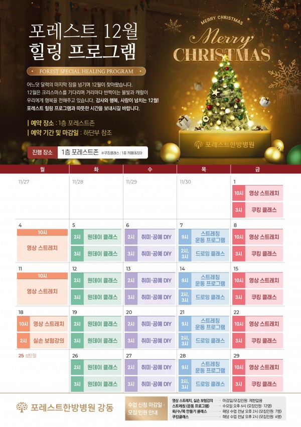12월에도 다양한 힐링프로그램들 준비했습니다.