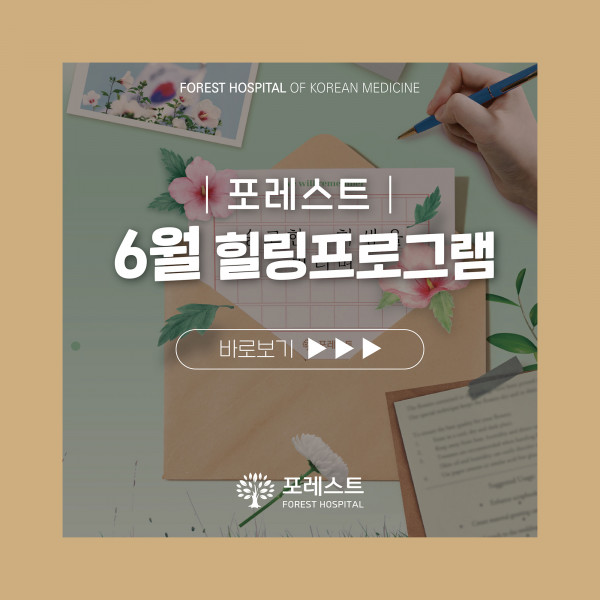 강동 포레스트 6월 힐링프로그램 357 http://foresthospital.co.kr/gangdong/main/sub06_04.html 안녕하세요 포레스트입니다! 6월, 나라를 위한 희생을 잊지 않는 호국보훈의 달입니다. 고마움의 마음을 담아, 묵념 한 번, 태극기 달기를 실천해보세요. 싱그러운 바람과 함께하는 6월, 포레스트의 힐링 프로그램과 함께 마음의 쉼표를 만나보세요♥ ✅ 문의 전화 : 포레스트 1899-5868 ✅ 유튜브 : ‘포레스트병원’ 검색 목록
