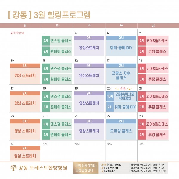포레스트 힐링 프로그램과 함께 건강하고 의미 있는 3월을 준비하세요♡