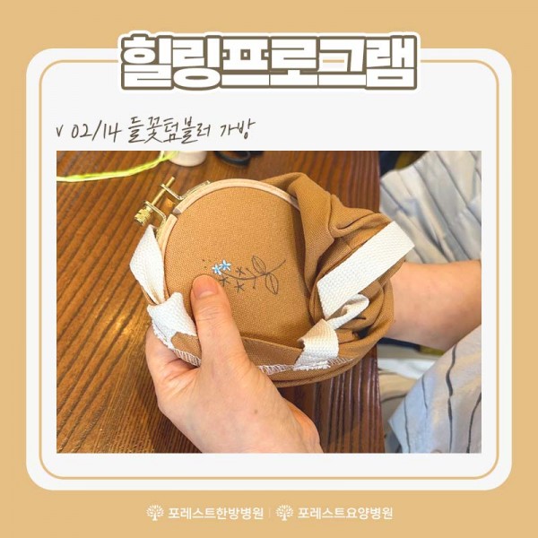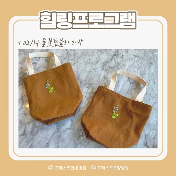 힐링프로그램-프랑스 자수 시간에 들꽃 텀블러 가방을 만들어보았습니다.
