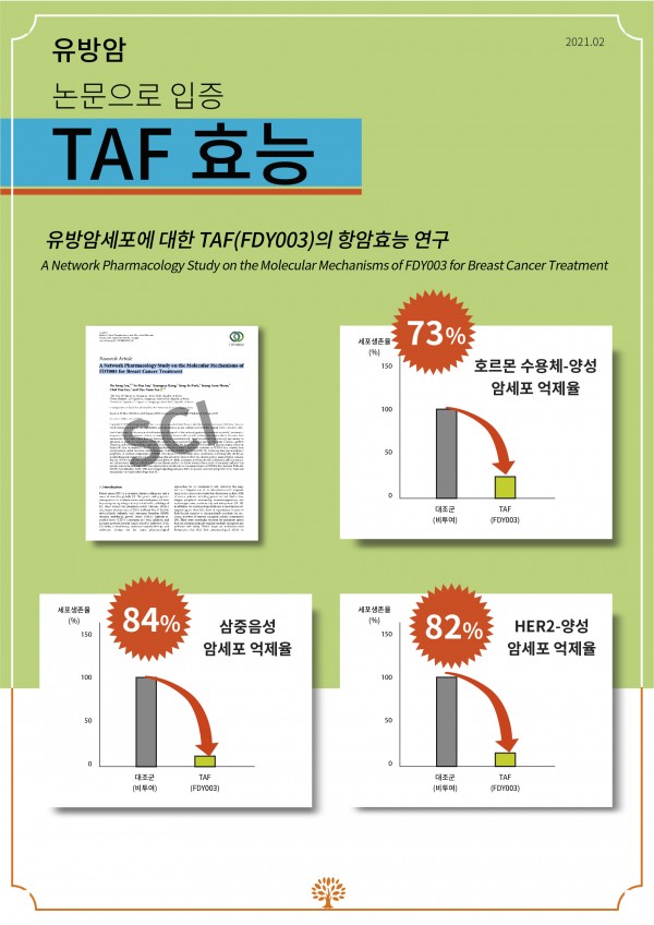 [헤럴드경제] 포레스트한방병원 이대연 병원장이 유방암세포에 대한 암면역치료 생약 보조제 ‘FDY003(처방명: T.A.F)’의 암세포 억제 효능을 발견하여, 그에 따른 논문인 ‘A Network Pharmacology Study on the Molecular Mechanisms of FDY003 for Breast Cancer Treatment’를 SCI급 논문에 게재했다고 24일 밝혔다.