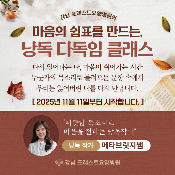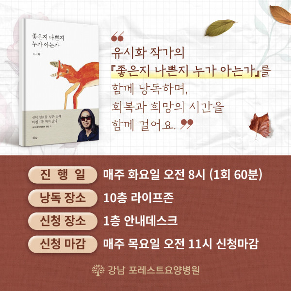 환우분들의 마음이 쉬어갈 수 있는 낭독 힐링 프로그램을 준비했습니다.