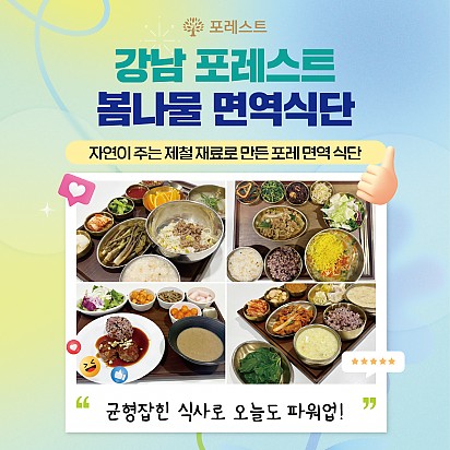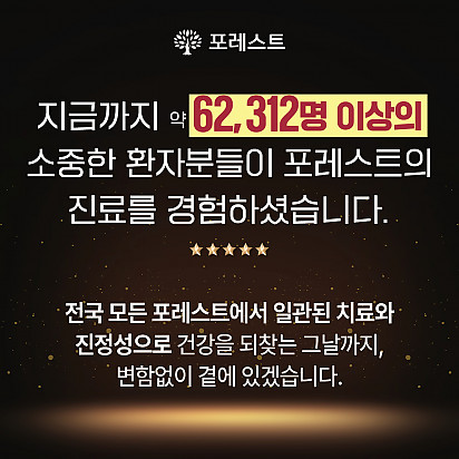 Hot 포레스트 8월 광복절 휴진 안내 [ 포레스트 8월 광복절 휴진 안내 ] 2025년 8월 15일 (금) 강남 포레스트는 광복절 휴진입니다. 진료 및 내원 … 2025.08.07 Hot 이 보라색이 면역력을 살립니다?! 가지에 숨겨진 힘 보라색 채소의 대표 주자, 가지! 그냥 먹으면 손해?! 암 예방에 도움을 줄 수 있는 '파이토케미컬'의 비밀과 가… 2025.07.24 Hot 초복을 담은 포레스트의 여름 밥상 안녕하세요, 포레스트입니다♥ 초복, 여름의 시작을 맞아 정성 가득한 보양식을 준비했습니다. 지친 몸에 활력을, 떨어진… 2025.07.22 Hot 힐링미에서 인정받은 포레스트 입원후기 암 요양병원 상담 앱 힐링미에서 인정받은 포레스트 입원후기를 소개합니다. 환자 한 분, 한 분의 상황에 맞춘 맞춤 치료… 2025.07.01 Hot 이달의 포레스트 얼굴을 소개합니다! 의료의 중심엔, 사람이 있습니다. 이달의 포레스트 얼굴을 소개합니다. 포레스트는 ‘사람 중심’의 의료를 실천합니다. … 2025.06.24 Hot 포레스트, 늘 곁에 있는 치료의 이름 안녕하세요 포레스트입니다. 지금까지 약 62,312명 이상의 소중한 환자분들이 포레스트의 진료를 경험하셨습니다. 전국 모… 2025.06.02 Hot 강남 포레스트 봄나물 면역식단 [강남 포레스트 봄나물 면역식단을 소개합니다] 자연이 선물한 식재료로 정성껏 준비한 한 끼, 기분 좋은 포만감과 활력을 더해… 2025.05.20 Hot 종로 포레스트병원 OPEN! 봄꽃처럼 화사하게 피어난 종로점 OPEN!! 봄의 시작처럼 가볍고 산뜻하게, 몸과 마음을 위한 나의 공간, 포레스트 종로점이… 2025.04.15 Hot [포레스트 소식]암 환자 한방치료 연구, 학회지에 게재 포레스트의 소식을 전해드립니다. 포레스트 병원장님의 암 환자 대상 한방치료 경험 연구가 ‘대한예방한의학회지’에 정식 게재되… 2025.04.09 12345 Search 검색대상 제목 내용 제목+내용 회원아이디 회원아이디(코) 글쓴이 글쓴이(코) 검색어 필수