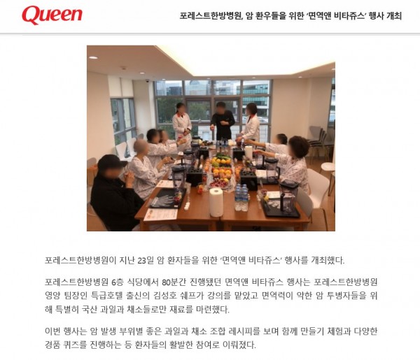[Queen]포레스트한방병원, 암 환우들을 위한 ‘면역앤 비타쥬스’ 행사 열려