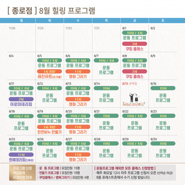 종로점 8월 힐링 프로그램