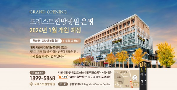 포레스트한방병원 은평점 개원예정 Grand opening 24년 1월, 포레스트한방병원 은평점 개원예정입니다! 차별화된 포레스트만의 진료, 서비스를 이제 은평에서도 만나보실수있습니다. 언제나 환자 치료에 최선을 다하는 포레스트가 되겠습니다. 감사합니다. 서울 은평구 통일로 636 은평미드스퀘어 4-5층 목록