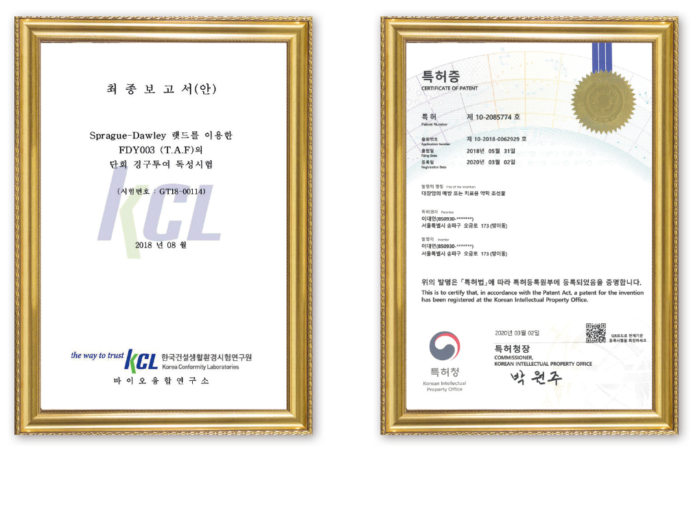 독자개발 스마트한약 / 독성시험 안정성 획득 / 항암효능 관련 특허 보유