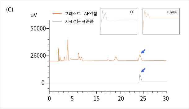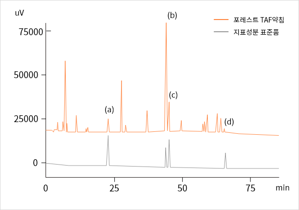 또한 한약재의 수많은 성분 중에 대표가 되는 한가지 성분을 지표성분이라고 하는데 그 지표성분의 분석을 통해 해당 한약재의 함량을 예측할 수 있습니다. 포레스트 통합 연구소는 성분분석을 통해 약의 근거마련에 힘쓰고 있습니다.