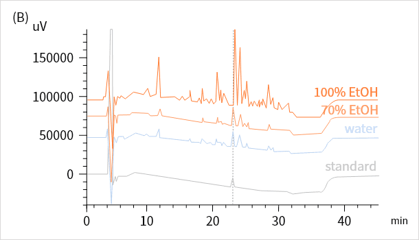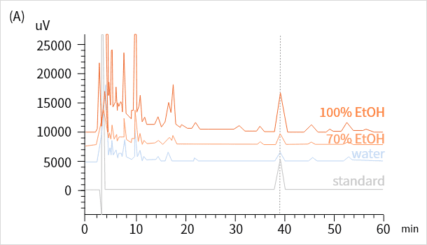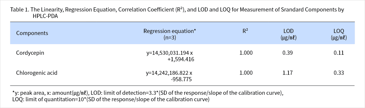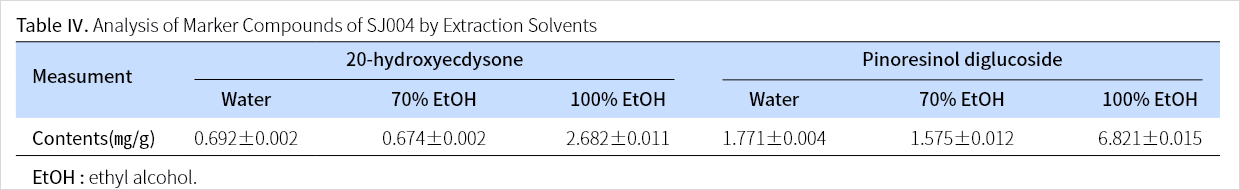 추출용매별 유효성분 변화와 해당 성분의 method validation